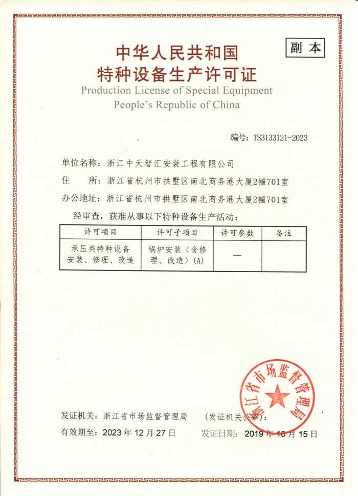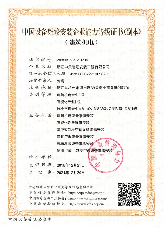設(shè)備安裝企業(yè)能力等級(jí)證書